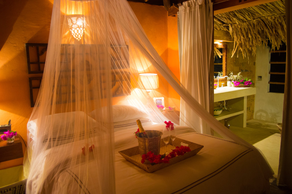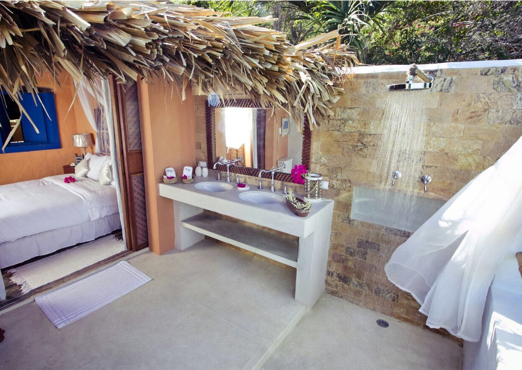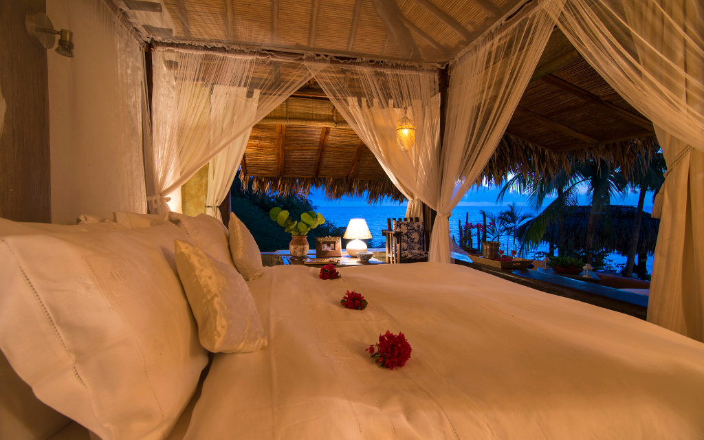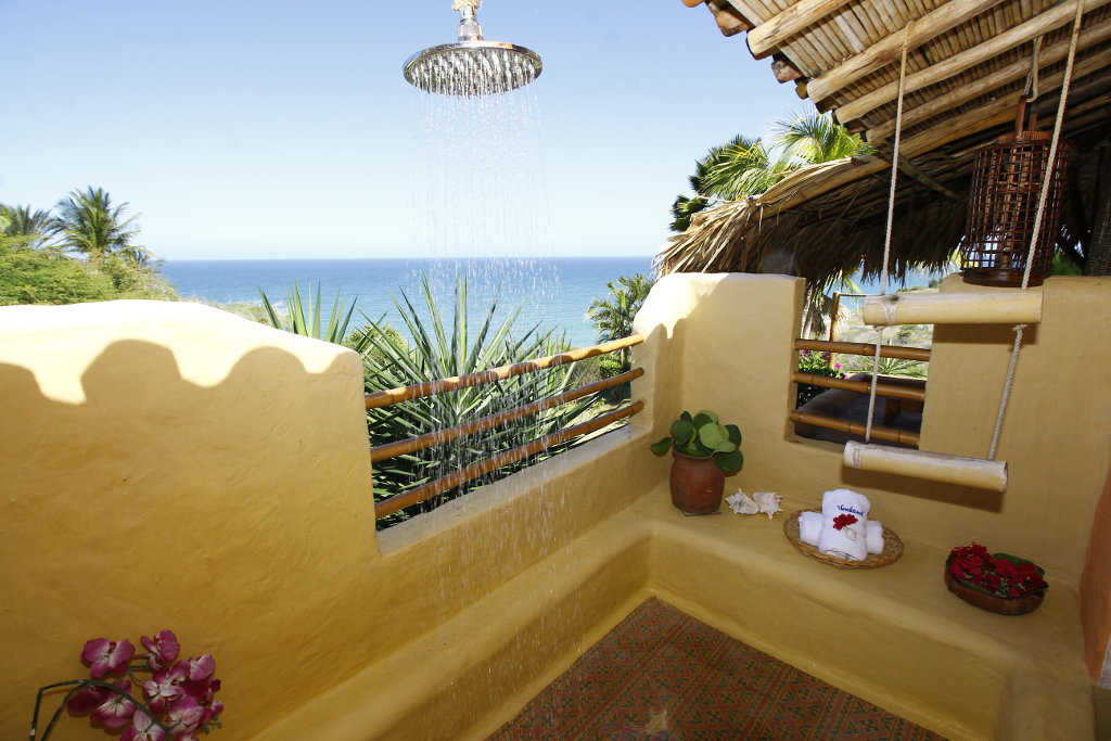 • 1 habitación principal con cama matrimonial, baño totalmente equipado con vista al mar y 2 lavamanos y además, un ático con cama individual.